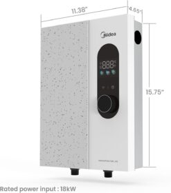 Midea 18KW Electric Tankless Water Heater, Touch Control, Wi-Fi Control, LED Display, Child Mode, 240 Volts with Automatic Power Modulation, On-demand Hot Water, White