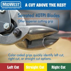 | Included Components | ‎MIDWEST Aviation Snip Set – Left and Right Cut Offset Tin Cutting Shears with Forged Blade & KUSH’N-POWER Comfort Grips – MWT-6510C |