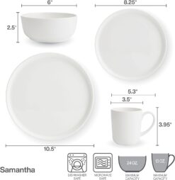 Contemporary and stylish, Samantha dinnerware by Mikasa is ideal for everyday dining. The clean white Bone China compliments any stemware or flatware, and the modern shapes update the look of your place settings. Bone China is widely considered to be the finest type of dinnerware due to its high level of whiteness, superior strength, and translucent properties. It’s also incredibly durable and chip resistant. The ideal choice for formal occasions, Bone China’s inherent elegance is both natural and timeless, but its versatility and resistance makes it suitable for daily use as well.