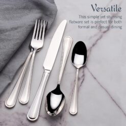 - VERSATILE: this simple yet stunning flatware set is perfect for both formal and casual dining