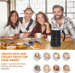 Milk Frother,CHINYA Automatic Milk Frother with Hot and Cold Functionality, Electric Milk Steamer and Warmer for Latte, Cappuccino, Hot Chocolate and Macchiato, Auto Shutoff (Black)
