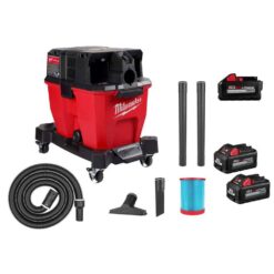 The Milwaukee M18 FUEL 9 Gal. Dual-Battery Wet/Dry Vacuum brings unmatched performance, durability, and versatility to jobsite cleanup. The POWERSTATE Brushless Motor and optimized components Outperforms 4.25 Peak HP Wet/Dry Vacuums, delivering more cleaning power than corded. The wet/dry vacuum cleans up more common jobsite debris like drywall dust, concrete dust, and wood/metal shavings than 4.25 Peak HP wet/dry vacuums in the same amount of time. The Dual-Battery Motor Head requires (2) M18 REDLITHIUM batteries to operate. This wet/dry vacuum provides users with the Most Durable Wheels and Hoses. Reinforced casters and tread design result in up to 8X wheel life. The crush and twist resistant hose construction delivers up to 2X hose life. The included casters and hose ensure key touchpoints of the vacuum will survive rough jobsite use and create longer overall tool life. With interchangeable motor heads, tanks, and carts, it is part of the Most Versatile Wet/Dry Vacuum System. Interchange motor heads, tanks, and carts for varying performance, holding capacity, and mobility with the easy access foot pedal. Part of the M18 System of tools, it is powered by M18 REDLITHIUM Battery Packs.
