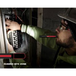 The Milwaukee Rechargeable 250L Penlight w/ Laser offers users faster, more accurate inspections. This rechargeable penlight delivers 250 lumens of TRUEVIEW HIGH DEFINITION OUTPUT, and an integrated laser pointer ensures faster inspections and accurate communication on the jobsite. A built-in protective rubber bite zone allows users to quickly direct light while performing two-handed tasks. With two output modes, users get the optimal light or run-time up-to 8 hours for any task. Stay ready from job-to-job with USB charging and an on-board battery indicator. The removable metal clip offers a secure attachment to shirts or pant pockets for reliable storage. This penlight with laser pointer is built to survive the toughest jobsite conditions with an IP67 water and dustproof rating and withstands impacts up to 2 meters. The Milwaukee Rechargeable 250L Penlight w/ Laser’s built-in battery gives users high performance and rechargeable capabilities where compact size is critical. The Milwaukee Rechargeable 250L Penlight w/ Laser is covered by a 2-year warranty.