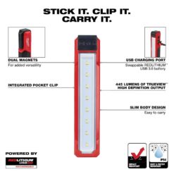 The MILWAUKEE® REDLITHIUMâ„¢ USB ROVERâ„¢ Pocket Flood Light is powered by REDLITHIUMâ„¢ USB and allows you to stick it, wear it, and carry it anywhere. This small floodlight delivers 445 lumens of TRUEVIEWâ„¢ High Definition Output with all-day runtime, more recharges, and 3X faster charging via USB. Stick, clip, and carry it anywhere with its dual magnet clip, perfect for mechanical, electrical, H/VAC-R, MRO, and automotive trades. The USB rechargeable light is impact and chemical resistant to withstand harsh environments. With two light output modes, you can maximize brightness or extend runtime with up to 13 hours of light on a single charge. The MILWAUKEE® REDLITHIUMâ„¢ USB Battery can be recharged in the flashlight via Micro USB or swapped out with additional REDLITHIUMâ„¢ USB Batteries for virtually no downtime. The MILWAUKEE® REDLITHIUMâ„¢ USB Pivoting Flashlight offers high output in any task and any position. It’s powered by REDLITHIUMâ„¢ USB, giving you high output light for any task from any position. The flashlight features spot and flood beam modes allowing you to change it from a high-powered flashlight to a versatile task light with the press of a button. Features 500 lumens of TRUEVIEWâ„¢ High Definition Output and a 155-meter (377 feet) spot beam distance. In flood mode, the LED flashlight’s 110° pivoting light head and magnet base provides you with hands-free task light. The MILWAUKEE® REDLITHIUMâ„¢ Flood Light and Flashlight are covered by a limited lifetime warranty.