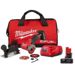 - Includes: M12 FUEL 3 in. compact cut off tool, 1 M12 XC4.0 battery, 1 metal cut off wheel, 1 carbide abrasive blade, 1 diamond tile blade, accessory shoe and guard, blade wrench, 7/16 in. flange adapter, M12 charger, contractor bag and 1 M12 XC6.0 battery.