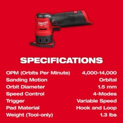 Milwaukee 2531-20 M12 FUEL 12-Volt Lithium-Ion Brushless Cordless Orbital Detail Sander (Tool-Only)
