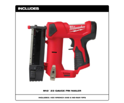 The M12 Pin Nailer drives 23-Gauge headless pin nails ranging in length from 1/2 in. to 1-3/8 in.
