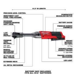 Milwaukee 2560-20 M12 FUEL 12V 3/8 in. Lithium-Ion Brushless Cordless Extended Reach Ratchet (Tool-Only)