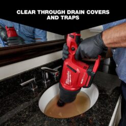 The Milwaukee M12 AIRSNAKE Drain Cleaning Air Gun Kit is the industry’s only drain cleaning machine designed to clear through drain covers and traps with powered air. The cordless air gun enables users to clear clogged drains while leaving fixtures and drain covers intact. The tool is designed for 1 in. to 4 in. drain lines and has the power to clear up to 35 ft. past vent stacks and tees. The drain cleaning air gun has a variable pressure dial providing users with complete control when working on delicate pipe systems. Powered air flushes water out of pipes, completely removing grease and sludge from pipe walls. Drain professionals, plumbers and facility maintenance will be able to work faster when clearing clogs with the ability to work over sinks and eliminate retrieval mess. The M12 AIRSNAKE is powered by Milwaukee’s M12 REDLITHIUM battery packs, providing users with more work per charge and more work over pack life. Built-in REDLINK Intelligence gives users optimized performance and overload protection against abusive situations. In addition to the air gun, this kit includes one M12 REDLITHIUM CP2.0 battery pack, one M12 REDLITHIUM battery charger, one 10 in. extension, one 1 in. to 2 in. drain plug, one 2 in. to 3 in. drain plug, one 3 in. to 4 in. drain plug, a drain shroud attachment, 3 straight connectors, one toilet seal attachment, one 15° offset connector and a plastic carrying case.