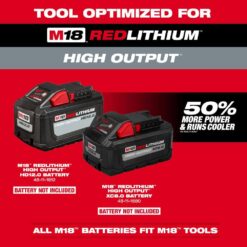 - Compatible with all M18 redlithium battery packs, optimized for use with the M18 redlithium high output HD12.0 battery pack: provides 50% more power and runs 50% cooler versus standard redlithium HD packs: superior pack construction provides the industry’s best protection against jobsite conditions