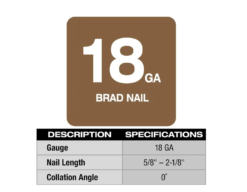 The 18 gauge nailer is compact in size, and very lightweight, providing users with unmatched access into tight spaces and limiting their fatigue throughout their day.