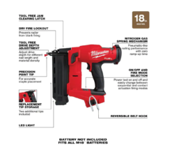 Additionally, the cordless brad nailer operates using Milwaukee’s REDLITHIUM Batteries (not included) and sealed compressed nitrogen to drive each nail, completely eliminating the cost of gas cartridges and maintenance associated with competitors’ nailers.