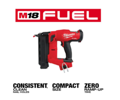 The MILWAUKEE 2746-20 M18 FUEL 18ga Brad Nailer delivers peak productivity at the jobsite, providing users with unmatched nailing performance without the hassle of a compressor and hose.