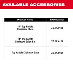 - Includes: M18 FUEL 14 in. Top Handle Chainsaw (2826-20T), (1) Carrying Case (49-16-2746), (2) 14 in. Chain (49-16-2744), Scabbard, Scrench