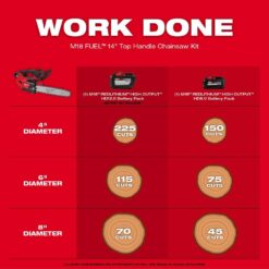 - Includes: (1) M18 FUEL 14 in. Top Handle Chainsaw (2826-20T), (1) REDLITHIUM HIGH OUTPUT XC 8.0 Battery (48-11-1880), (1) M18 FUEL Blower (2724-20), M18 & M12 Rapid Charger (48-59-1808), Scabbard, Scrench