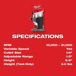 - 2723-20: Accepts 1/4 in. shank router bits