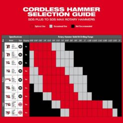 The Milwaukee M18 FUEL 1-1/8 in. SDS Plus Rotary Hammer is the next generation of cordless rotary hammers delivering users ultimate jobsite performance and productivity. The M18 FUEL 1-1/8 in. SDS Plus Rotary Hammer is the fastest drilling and hardest-hitting rotary hammer in its class with AUTOSTOP Control for enhanced safety, drilling up to 50 5/8 in. x 3 in. holes per charge when paired with the M18 HIGH OUTPUT XC6.0 Battery. The POWERSTATE Brushless Motor delivers 3.6 ft-lbs of impact energy, 800 RPM, and 4,600 BPM, providing users with the speed and power for the most demanding applications. REDLINK PLUS intelligence tool technology ensures maximum rotary drill performance and protects it from overload, overheating, and over-discharge. The M18 REDLITHIUM HIGH OUTPUT XC6.0 Battery delivers 50% more power while running 50% cooler than the M18 REDLITHIUM XC batteries. This cordless hammer drill provides maximum control and enhanced safety with the AUTOSTOP Kickback Control. This feature prevents over-rotation if the tool gets bound up while drilling in rebar or hard aggregate. Milwaukee’s AVS Anti-Vibration System minimizes vibration for maximum comfort.