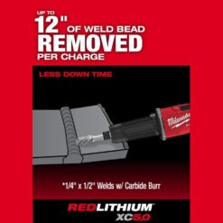 - 2939-20, M18 REDLITHIUM XC5.0 battery pack (not included) delivers up to 12″ of weld bead removed