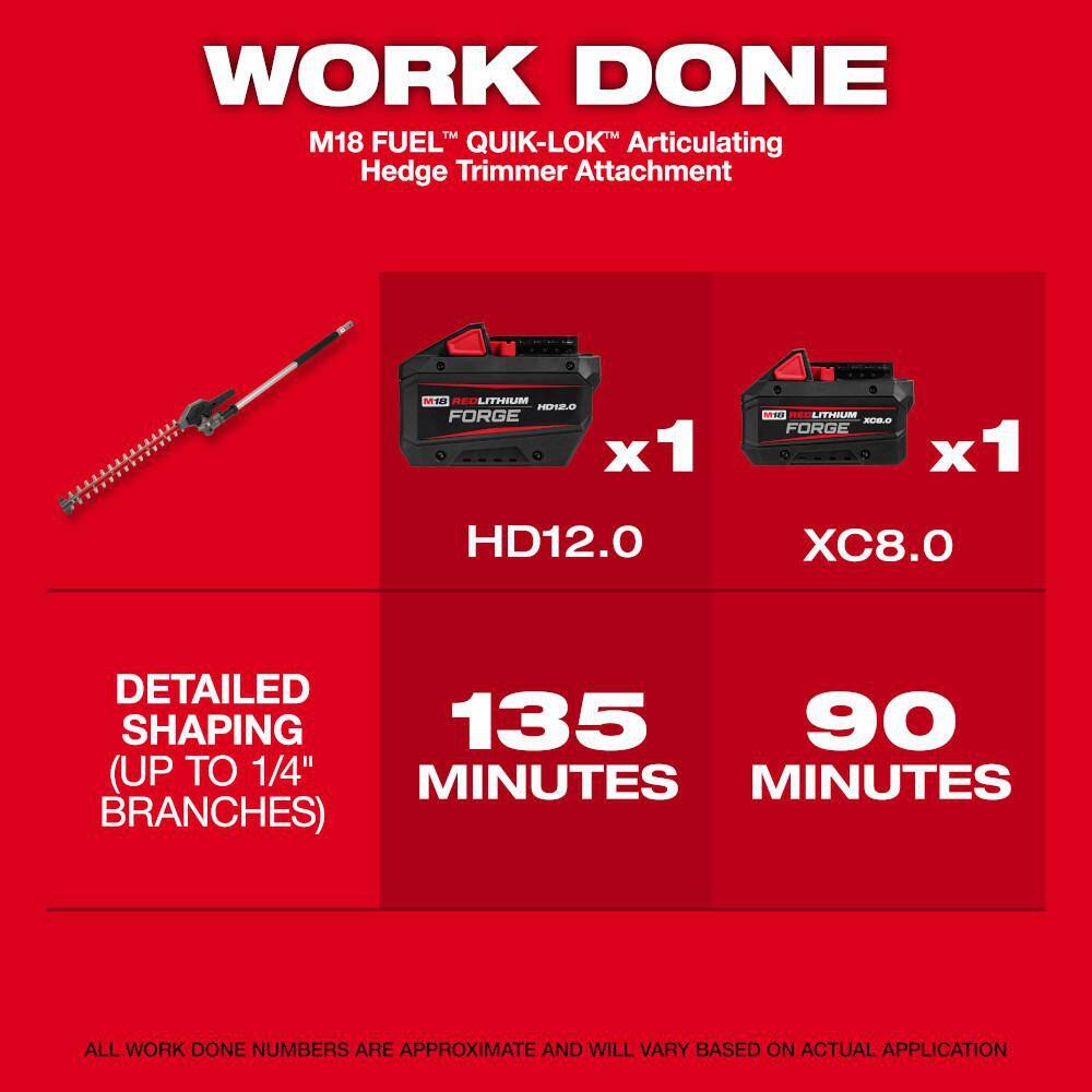 - Includes: M18 FUEL Power Head w/ QUIK-LOK (3016-20), String Trimmer Attachment (49-16-2717), Articulating Hedge Trimmer Attachment (49-16-2719), M18 FORGE 8.0Ah Battery (48-11-1881), M18/M12 Rapid Charger (48-59-1808)
