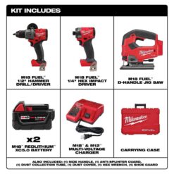 - Includes: (1) M18 FUEL 1/2 in. hammer drill (2904-20), (1) M18 FUEL 1/4 in. hex Impact Driver (2953-20), (2) M18 REDLITHIUM XC5.0 battery, (1) M18 and M12 multi-voltage charger, 1 side handle, 1 BMC Case