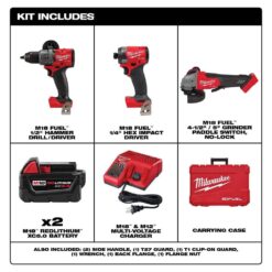 Milwaukee 3697-22-2880-20 M18 FUEL 18-Volt Lithium-Ion Brushless Cordless Combo Kit 2-Tool with 2 Batteries Charger 4-1/2in. to 5in. Grinder