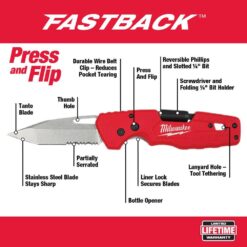 Milwaukee 48-22-1540-48-22-6331-48-22-2710 FASTBACK 3 in. 5-in-1 Folding Knife with Pliers Kit and Screwdriver Set (14-Piece)