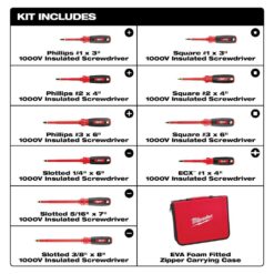 - Kit includes one 48-22-2210 10-piece 1,000V insulated screwdriver set and case and one 48-22-8301 Packout backpack