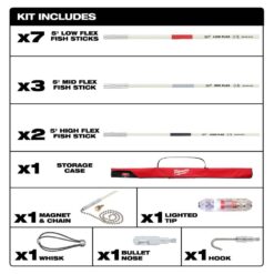 - Kit includes: (1) 48-22-4156 60 ft. fiberglass fish stick low/mid/high flex combo kit with accessories and (1) 48-22-4082 1 in. iron conduit bender and handle