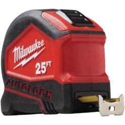 The Milwaukee 25 ft. Compact Auto-Lock Tape Measures deliver up to 12 ft. of reach. The auto-lock design automatically locks the user’s blade in place for quick and efficient measuring. These tapes are equipped with wear resistant nylon blade protection and an Impact-resistant 5-point reinforced frame to withstand the jobsite. The tape blade also features a Fractional scale. Includes six 25 ft. Compact Auto-Lock Tape Measures.