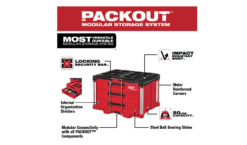 The Milwaukee PACKOUT 3-Drawer Tool Box has a 50 lbs. weight capacity and a locking security bar that secures the drawers during transport and allows users to padlock the drawers closed keeping them securely shut during transport.
