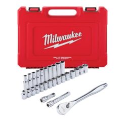 The Milwaukee Metric 28-Piece 1/2 in. Drive Ratchet and Socket Set is designed from the ground up to offer users better access in tight spaces and maximum tool strength. The 90-tooth ratchet tool offers 4 of arc swing and a slim profile design, allowing users to work in tighter spaces. The sockets feature 4 FLAT sides, which deter rolling and are wrench-ready for enhanced versatility. The optimized socket geometry helps reduce bolt rounding and stripping. The 1/2 in. sockets have their metric measurements laser engraved into the flats for improved, easy-to-read visibility. The 1/2 in. ratchet and socket kit comes with a removable inner tray, designed to be stored long-term in a steel storage chest. The set also comes with a durable carrying case for ultimate portability and accessories so our users can get every job done, both in the garage and on the jobsite. The Milwaukee drive ratchet and socket set is backed by a lifetime guarantee.