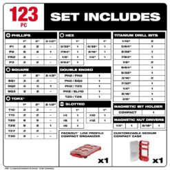 Milwaukee 48-32-4082-48-89-4670 SHOCKWAVE Impact-Duty Alloy Steel Driver Bit Set with PACKOUT Case and Titanium Drill Bit Set (115-Piece)