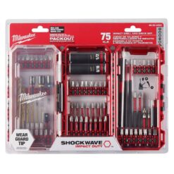 The MILWAUKEE® SHOCKWAVE Impact Duty™ 75PC Drill, Drive & Fasten Set is engineered to be the Most Durable, Best Fitting driver bits on the market. The WEAR GUARD TIP™ delivers increased wear resistance which protects the impact bit’s fit over the life of the bit. The SHOCK ZONE™ is optimized for each tip type and length of driver bit in the set to absorb peak torque and prevent breaking. The driver bits are made from CUSTOM ALLOY76™ steel and a proprietary heat treatment process to extend bit life, providing up to 50X life versus other impact driver bits on the market. The Milwaukee SHOCKWAVE Impact Duty™ driver bits are built to provide users with extreme durability for the most demanding applications. Set is organized in a customizable accessory case designed for use in PACKOUT™.