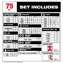 Milwaukee 48-32-4098 SHOCKWAVE Impact Duty Alloy Steel Drill, Drive and Fastening Bit Set with PACKOUT Accessory Case (75-Piece)