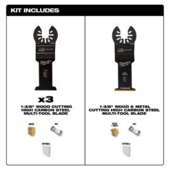 - 49-25-1103W includes: (3) HCS wood-cutting multi-tool blades, (1) HCS wood and metal cutting multi-tool blade