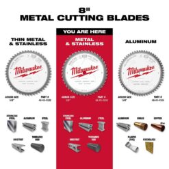 The MILWAUKEE 8″ 42T Metal & Stainless Cutting Circular Saw Blades are specifically designed to exceed contractor’s expectations for blade life, cut quality, and speed in the most demanding metal cutting applications – without a lubricant. The metal cutting circular saw blades feature hand-tensioned hardened alloy steel bodies. This extends the user’s blade life and delivers them the highest quality cuts available. The blades feature Cermet-Tipped Teeth with Alternate Top Bevel grind enabling users to shear through metal delivering you burr-free, cool-to-touch cuts.