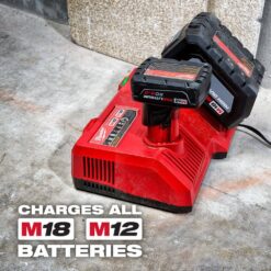 The Milwaukee M18 and M12 Super Charger charges batteries up to 4X faster than standard Milwaukee chargers, massively reducing downtime and maximizing productivity. The charger accepts all M18 and M12 batteries, providing an upgrade for both M18 and M12 systems. M18 REDLITHIUM HIGH OUTPUT HD12.0 fully charges in only 1-hour. HIGH OUTPUT batteries are optimized for use with Super Charger, each built with premium components for superior charging capability. Featuring REDLINK Intelligence, the dual battery charger communicates directly with each battery to monitor cell voltage, temperature and charge status to optimize the performance and extend the life of the pack. The Super Charger identifies the fastest charge rate for each M18 or M12 battery pack inserted, adjusting to charge each in the shortest amount of time possible.