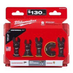 The Milwaukee Universal Fit OPEN-LOK Oscillating Multi-Tool Blade Kit offers users an assortment of the top-selling oscillating blades. The Titanium Enhanced Bi-Metal blade uses premium high-speed steel and lasts up to 15X longer than standard high carbon steel (HCS) blades. The bi-metal blade is ideal for users making smooth cuts in wood and nails, PVC and drywall. The segmented blade is great at maintaining a long straight cut, cutting up to corners and flush cutting. The Triple Ground Japanese Tooth Blade delivers users up to 2X faster cuts than the previous Milwaukee HCS blades and features a PRO-CURVE cutting edge for greater control. These multi-tool blades are ideal for fast, clean cuts in hardwood and can also be used in other woods, PVC and drywall. The oscillating wood blades have been designed with aggressive, precision ground teeth for fast cuts in wood, drywall and PVC. This oscillating tool blade kit is designed with global materials and includes a storage case.