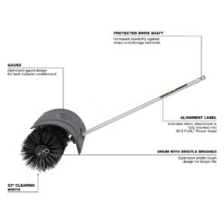 The Milwaukee M18 FUEL QUIK-LOK Bristle Brush Attachment is powered by the Milwaukee M18 FUEL Power Head with QUIK-LOK and is compatible with the M18 FUEL QUIK-LOK Attachment System. This attachment’s optimized bristle design is great for removing debris like mulch and dirt from hard surfaces and allows for longer life while covering a 23 in. clearing width. Milwaukee bristle brush’s optimized guard design offers the best material containment. Milwaukee QUIK-LOK Attachments feature protected drive shafts for increased durability against drops and storage elements. The bristle brush attachment also features optimized gearing to manage the cordless Milwaukee M18 FUEL Power Head RPM output specifically for this attachment.