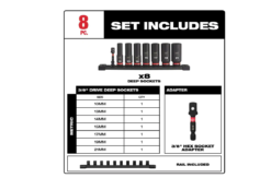 Milwaukee 49-66-7021 SHOCKWAVE Impact Duty 3/8 in. Metric Deep Impact Rated Socket Set (8-Piece)