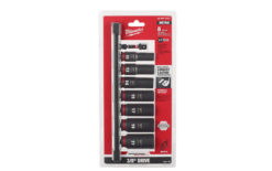 There’s nothing negative at all to say about these sockets except that it would be nice if they went up one more size to 22 mm (then one would fit my lug nuts). But I already have multiple 22mm impact sockets as well as one with a nylon sleeve so I can live w/o the 22mm. The holder these come with is very nice. It is much more than nice packaging and an afterthought. It is one you will want to actually keep and use. I have the same holder with other Milwaukee sets and I like that it has a wide base making it stable enough they stay upright well and do not easily tip over when you grab one. These are some very solid sockets and paired with a M18 impact wrench you are ready for knocking off those stubborn fasteners. The 6-point design is great and the markings are bold, tough (deeply stamped) and clear even for my aging eyes. These are the perfect mates to the M18 impact wrench one of which I keep in the back of my jeep and one of which I keep handy in my shop. You just cannot beat the quality of the Milwaukee sockets be it these or the non-impact ones. These are simply top shelf and you can’t go wrong with them. One thing that would make the set better is if it came with a ½ to 3/8 adapter since many impact wrenches are ½ drive as are mine. But I have adapters already so no biggie. It is just ironic that the web page says “Optimized for use with 1/2″ drive impact wrenches” which I suspect is simply a typo. In any event, I have 3 other sets of impact rates sockets some of them very good ones including a high quality set of metric swivel ones. Even those don’t match these for quality of the markings. These are easily my new favorites for deep well impact.