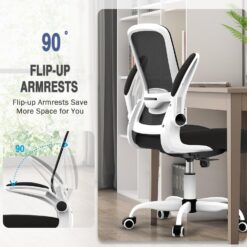 Mimoglad Office Chair, Ergonomic Desk Chair with Adjustable Lumbar Support, High Back Mesh Computer Chair with Flip-up Armrests-BIFMA Passed Task Chairs, Executive Chair for Home Office (White, Black)