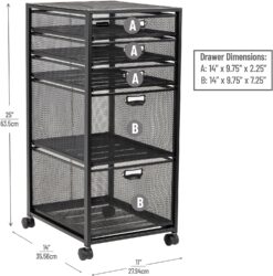 - Dimensions: This rolling file cabinet measures 11 long x 14 wide x 25 inches tall (27.94 x 35.56 x 63.5 centimeters) and weighs 9.95 lbs (4.51 kgs), this portable storage cart is the perfect size for maximizing space without sacrificing functionality