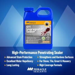 Miracle Sealants 511 Impregnator is a penetrating sealer designed for the protection of all medium to dense porous surfaces. Forms a transparent layer strong enough to combat moisture and stains while allowing vapor release. 511 Impregnator does not alter the natural look of the surface following application. Provides water, stain and slip protection for interior and exterior tile and natural stone surfaces. Surfaces treated become harder and less slippery.