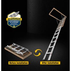- High load capacity: our aluminum attic ladder is designed to support up to 350 lbs., ensuring sturdy and safe use for various household needs