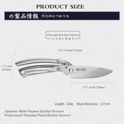 MITSUMOTO SAKARI 10 inch Japanese Kitchen Scissorss, Silver Titanium Plating Kitchen Shears Heavy Duty, Multipurpose Alloy Steel Poultry Shears for Chicken, Meat, Bone & Fish