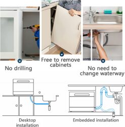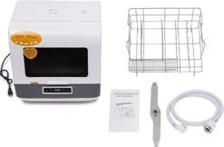 【DEEP CLEANING – 360° High-Pressure Spray】This desktop dishwasher adopts a high-efficiency long-life motor and a 360-degree rotating high-pressure spray with an S dart-shaped rotating spray arm, which cleans full coverage and no dead spots.