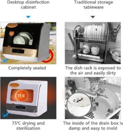 【AIR CIRCULATION SYSTEM】The desktop dishwasher uses high-temperature steam, washing and drying, and the efficient fresh air circulation system truly ensures that the cavity has no peculiar smell and residue, and the tableware can be stored for a long time.
