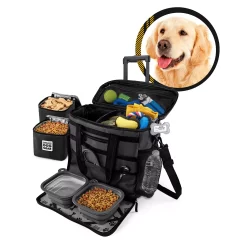 Overland Dog Gear is an organized luggage system that makes it simple to travel with your dog for any length of time. The Rolling Week Away Bag holds everything your dog needs to travel by car or air for a weekend, a week or even to the pet sitter. It’s your dog’s own luggage, complete with a special personalizable luggage ID tag. With Overland Dog Gear, you and your dog will be organized, packed–and ready to go!