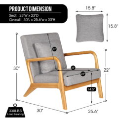 Modern Mid Century Accent Chair , 25.6″ x 30″ x 30″,Fabric Reading Armchair,Accent Chairs for Living Room Bedroom,Easy Assembly,Gray